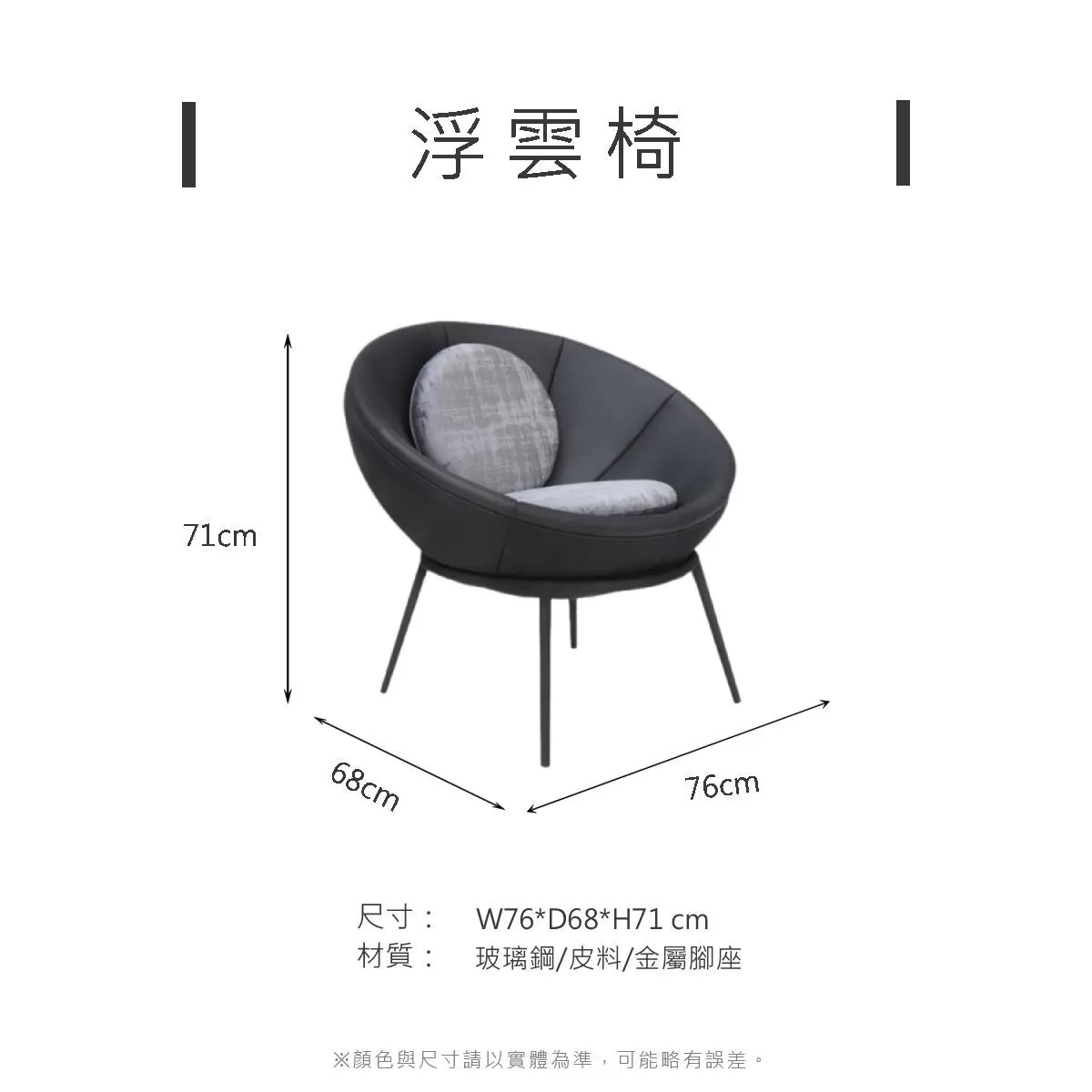 材質:玻璃鋼/皮料、金屬腳座
